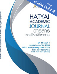 วารสารหาดใหญ่วิชาการ = HATYAI ACADEMIC JOURNAL : ปีที่ 21 ฉบับที่ 1 (มกราคม - เมษายน 2566)